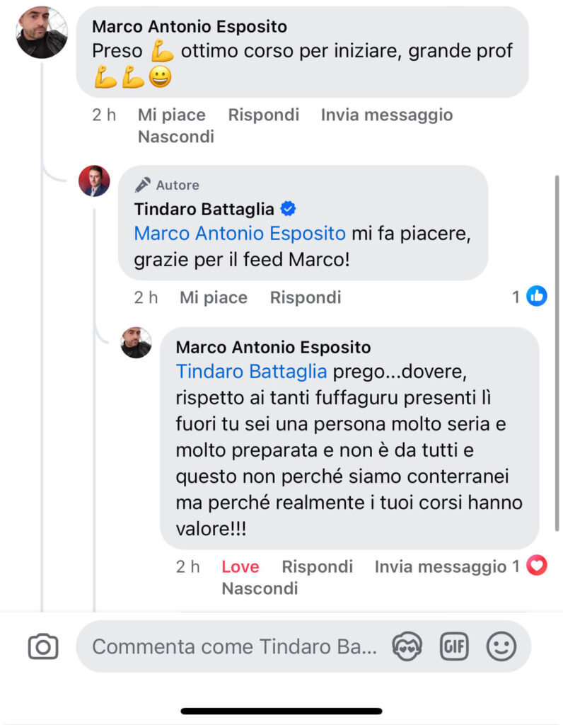 Accedi subito ad Upgrade, il gruppo fb segreto degli studenti di Tindaro Battaglia in cui Tindaro stesso risponde alle tue domande sui percorsi e che ha visto nascere migliaia di vincenti e milionari.