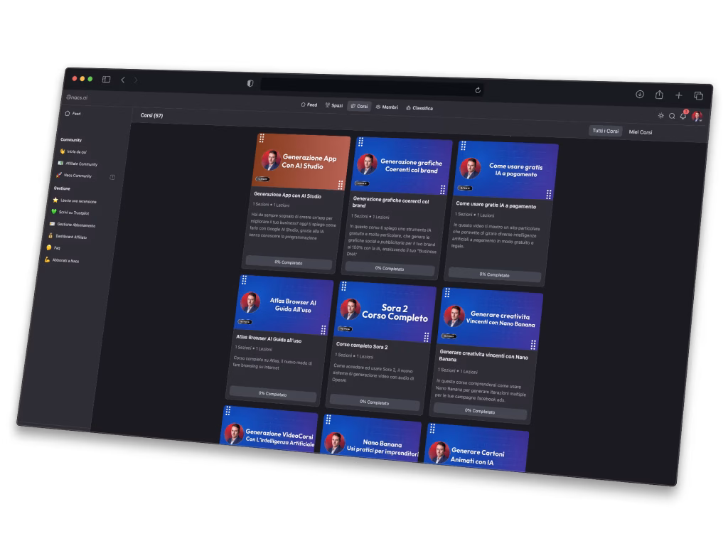 Centinaia di ore di informazioni pratiche su eCommerce, Prodotti Digitali, Affiliate Marketing, Mindset e Performance.